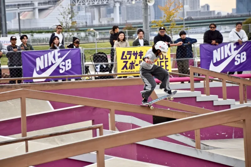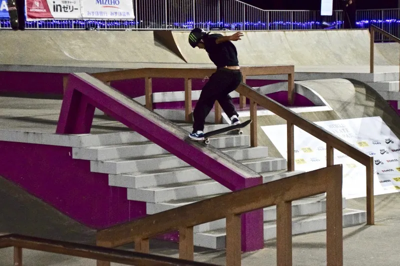 ランでKグラインドからのノーリーフリップアウトを決めたことで他を引き離し、ベストトリックでも1本目に早々と高得点を重ねた織田が今大会を制した。