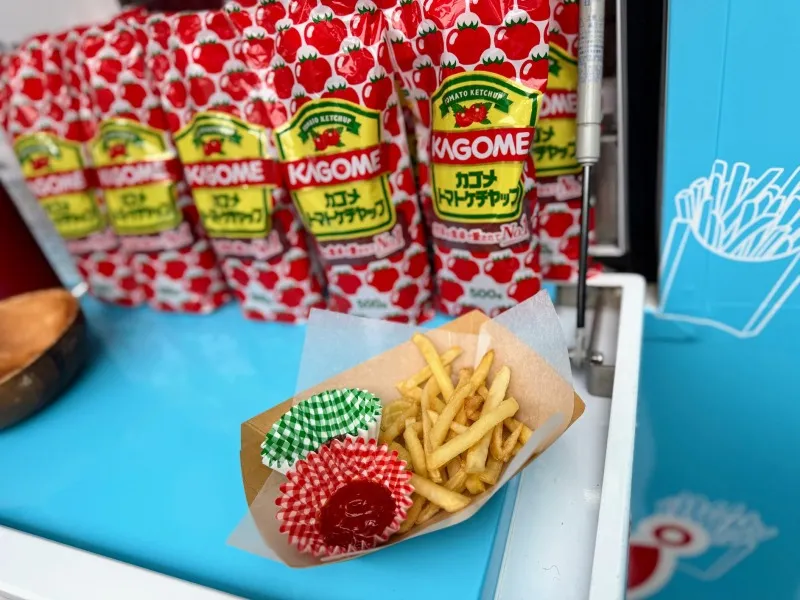 発表会後には、会場外のキッチンカーにて、「焼きケチャップ」とそのままのケチャップの2種類をフライドポテトにつけて食べ比べできる試食会が行われました。