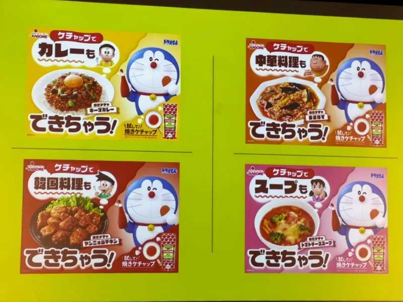 「焼きケチャップ」が普段の食材でもご飯でもパンでも合い、カレー、中華、韓国料理、スープでもはずさない調理法であることにドラえもんが太鼓判を押しました。