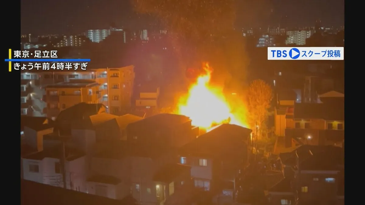 けさ早く、東京・足立区の2階建て住宅で火事があり、4人がけがをしたほか、中学生とみられる10代の女性と連絡がとれていないということです。